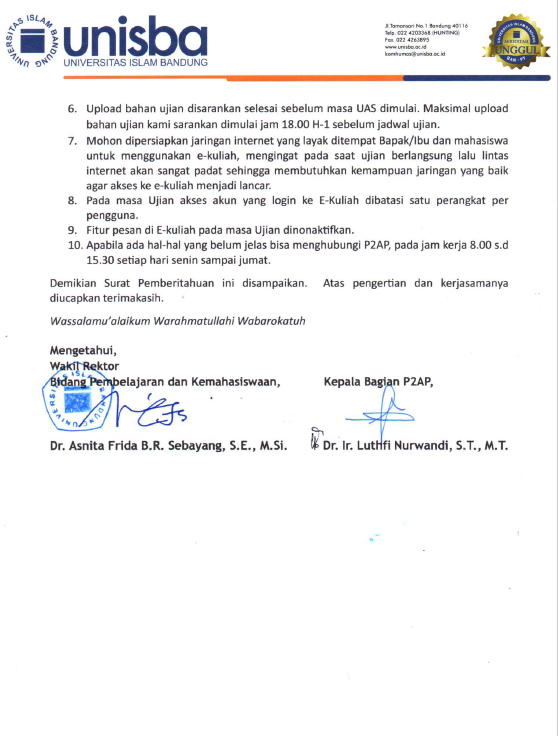 Diinformasikan kepada seluruh mahasiswa Unisba agar mengisi Kuesioner Proses Pembelajaran dan Proses Layanan untuk Semester Ganjil Tahun Akademik 2025/2026 sebelum mengikuti Ujian Akhir Semester untuk Cetak Kartu Ujian.